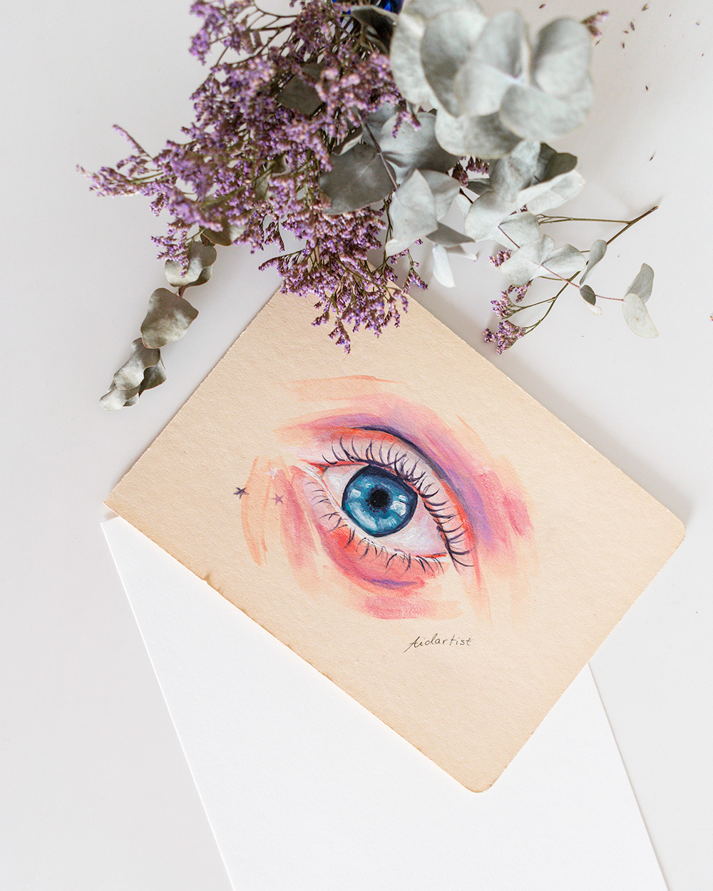 Obra original pintada a mano sobre cartoncillo con pintura acrílica.